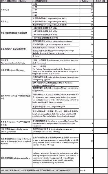 申請189簽證的前提是職業屬於SOL清單上的職業類別,例如目前最低分數線工程類Engineering 達到60分, 會計和IT都要到70分(如果配偶加分的話需要配偶評估的職業也在SOL上)。