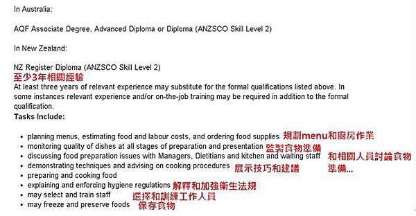 記得,在就讀課程時,就可以依澳洲官方主廚職業定義(http://tiny.cc/fpzr9y),為之後的PR做準備喔!