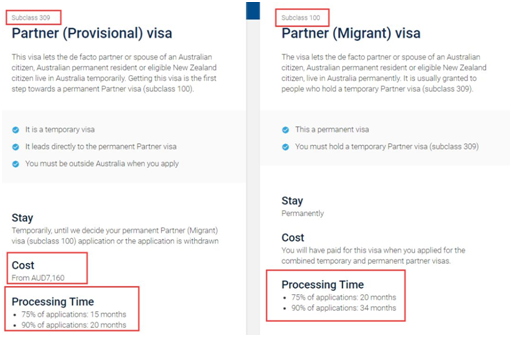 簡單介紹兩個簽證:這是一個“兩階段”簽證,適合於澳大利亞永久居民、公民(或合資格的新西蘭公民)在澳洲境內擔保他們的事實伴侶或配偶申請澳洲永久居留權。