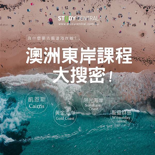 Study Central 將報導一系列的東海岸特色課程與學校,一次破解你對澳洲海岸城市的迷惘與想像!只要你願意移動,提起勇氣與行囊,各種機會總是在不遠的燈火闌珊處~