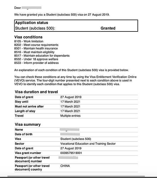 🧛♀過了27天(2019年8月14日),E同學才遞交新的學生簽證。在Study Central 顧問專業的輔導之下,提供了非常完整的GTE 說明,以及其他材料解釋信。