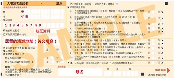 👆👆這是入境澳洲時必填的入境卡,如果有攜帶則在是的框內打叉叉,不確定的項目也是在是的地方打叉,若沒有攜帶的話則是打否的地方打叉👆👆