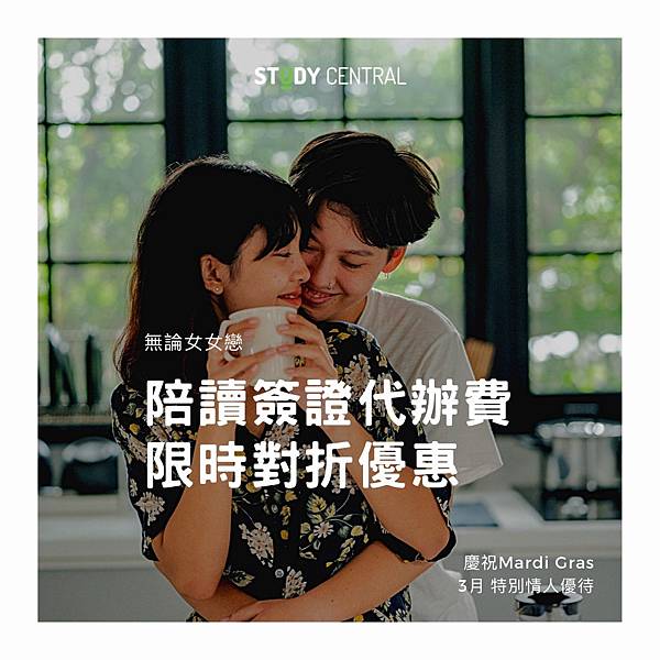 去澳洲留學,不再需要放棄感情或家庭,學生陪讀簽證讓你兩人成行,不再有遠距離的問題!